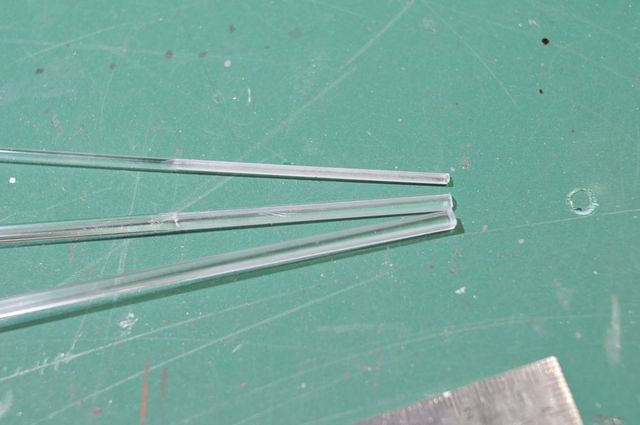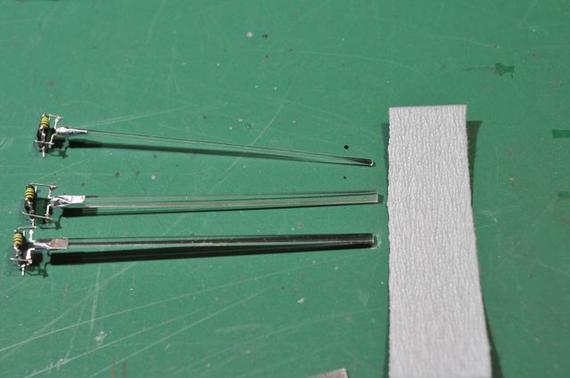 確認の為、丸、三角、四角のそれぞれの導光材の半分をペーパー掛けしました。