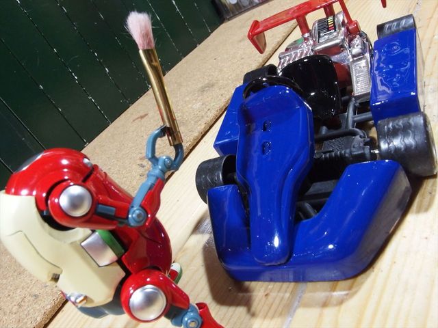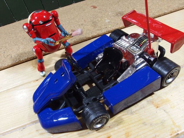 先日購入した100均のゴーカート シールを剥がして、塗装したいと思います。