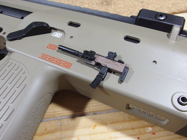 このMP7A1は特殊部隊での運用が多いそうですので、そういった部隊ではサポート機器を取付ている