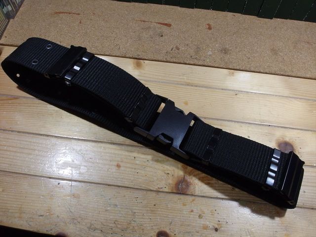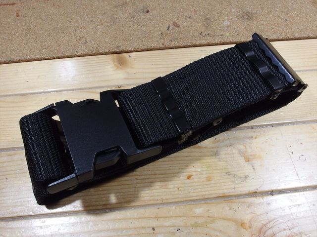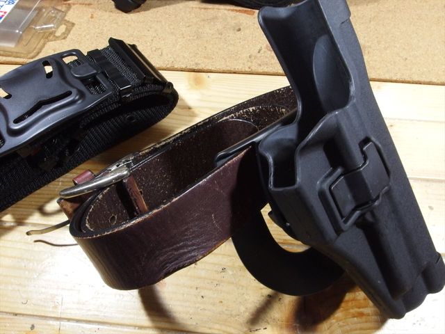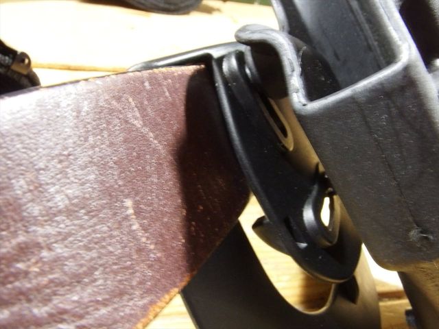 先ほどのガンベルトに・・・ベルトが太いですね、このベルトの場合はもうひとつの金具の方が良いです。