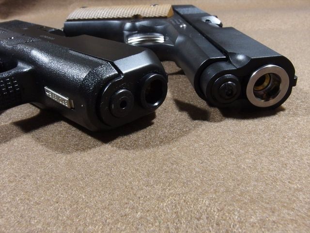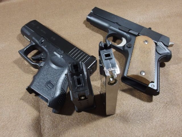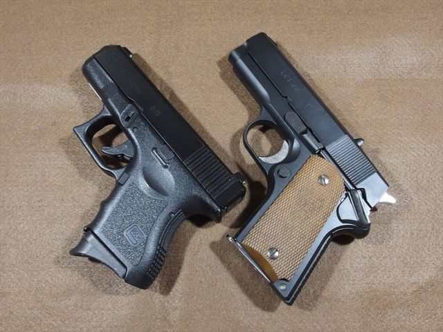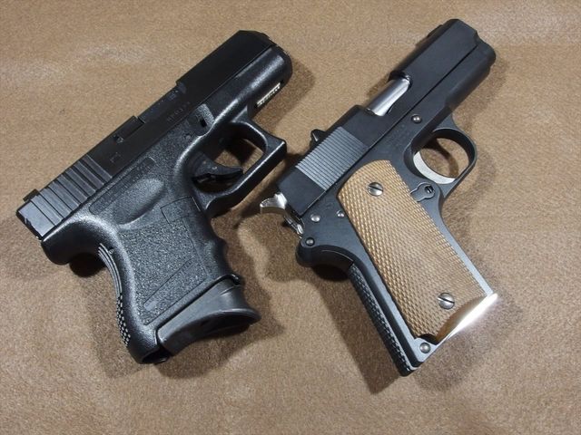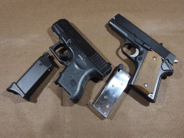 弾の威力としては45口径のデトニクスが上ですが、装弾数ではグロック26ですね