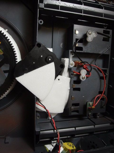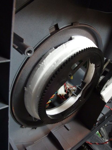 両面テープで固定しているので、歯車が少しずれると、モーター側のギアとの接点が大きくなり、それが
