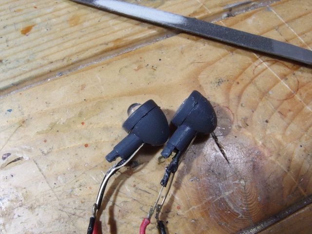 ヘンロンのヘッドライトですが、LEDがこんな状態です、かっこ悪いので、レンズ部分を削ります。