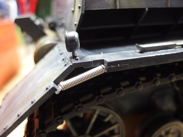 取付、こちらも塗装しますが、ヘッドライトと先ほどのバネの部分が固着してからにします。