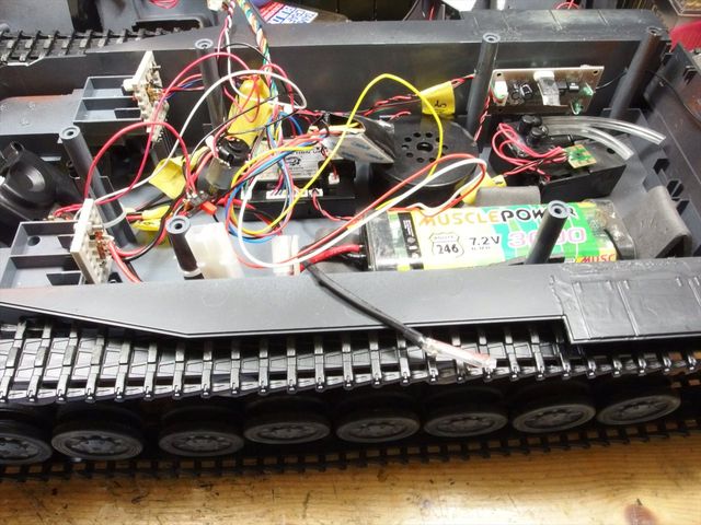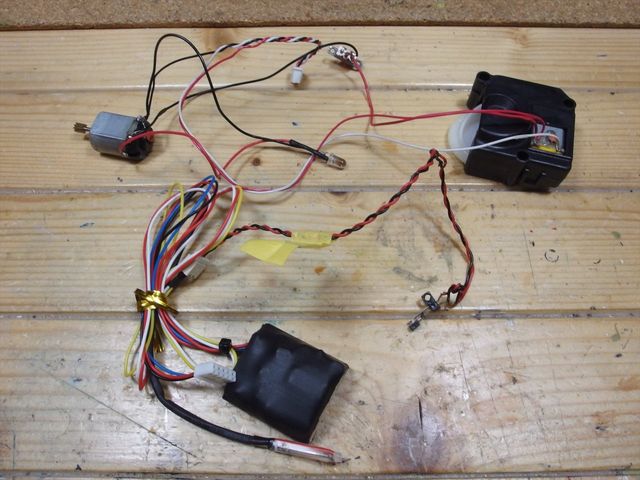 写真中央下のユニットが発光ユニット、その他はヘンロンの砲塔内に有る電装部品です。