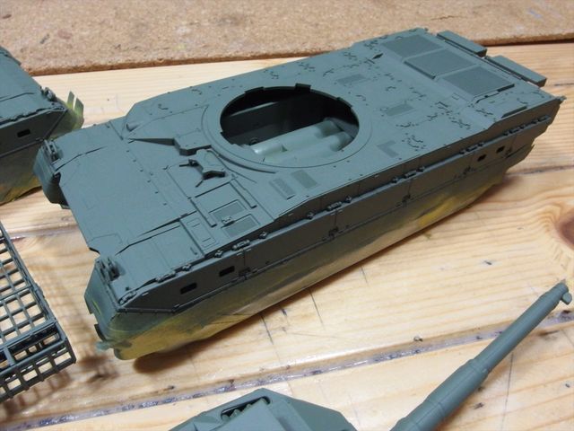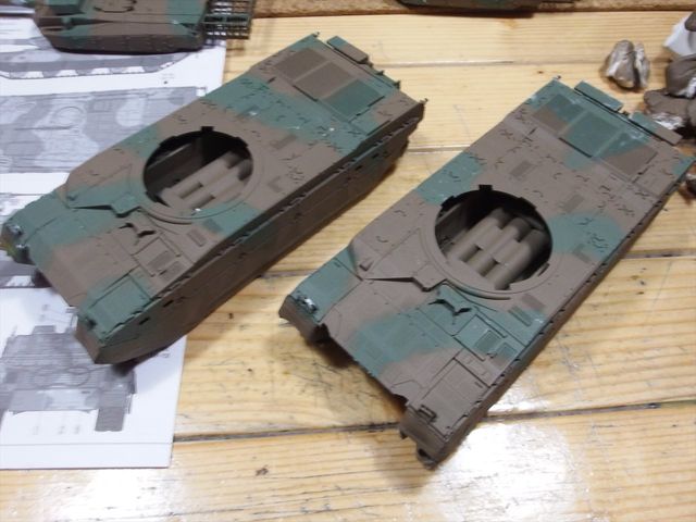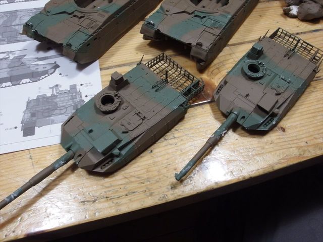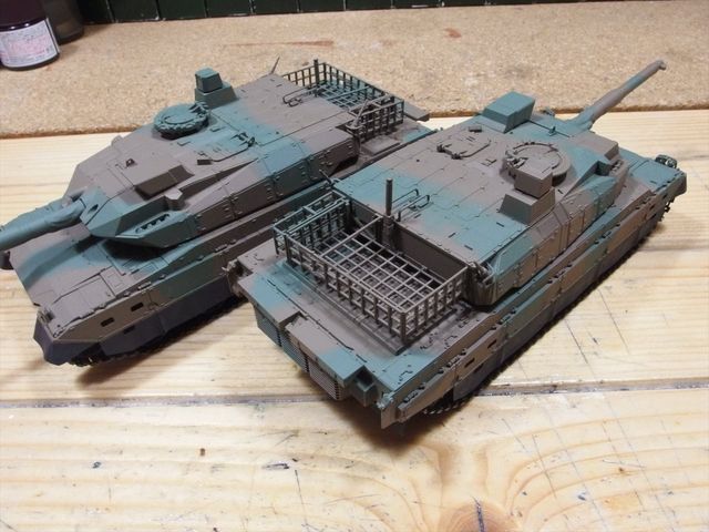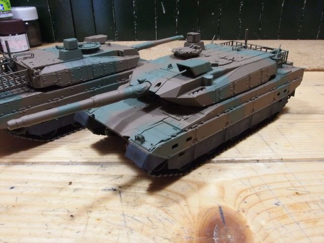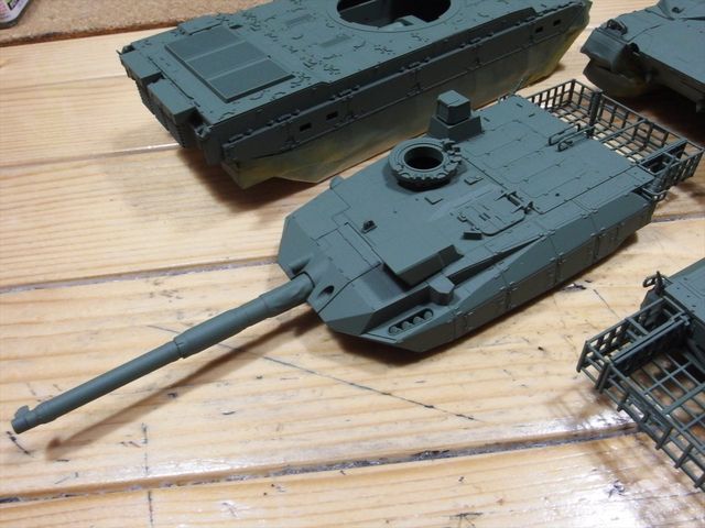 10式戦車をスプレー缶で迷彩塗装します。