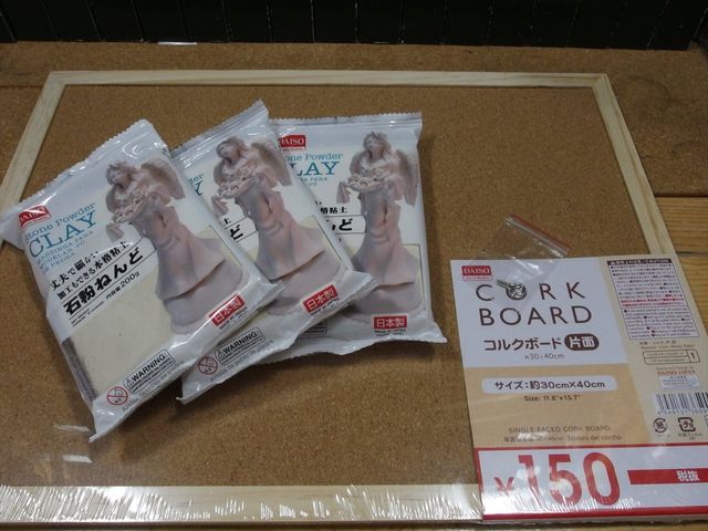 材料は100均にて コルクボードと石粉粘土