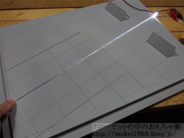 取り敢えずピットを二本掘りました、そこへアクリル棒を差し込みLEDライトを取り付け