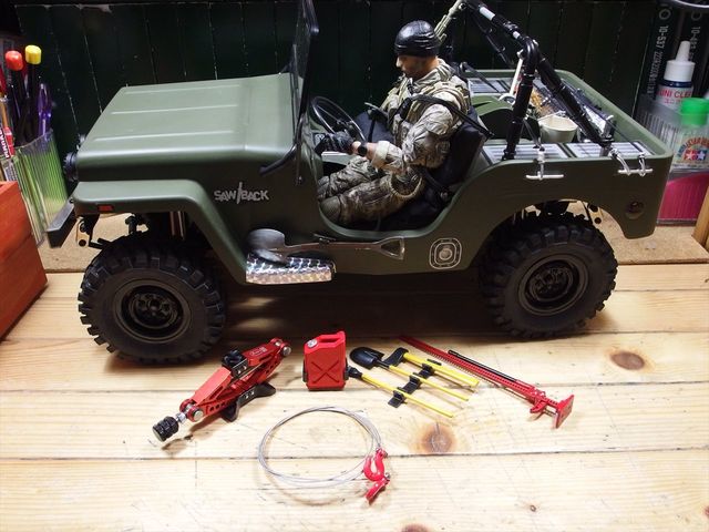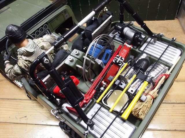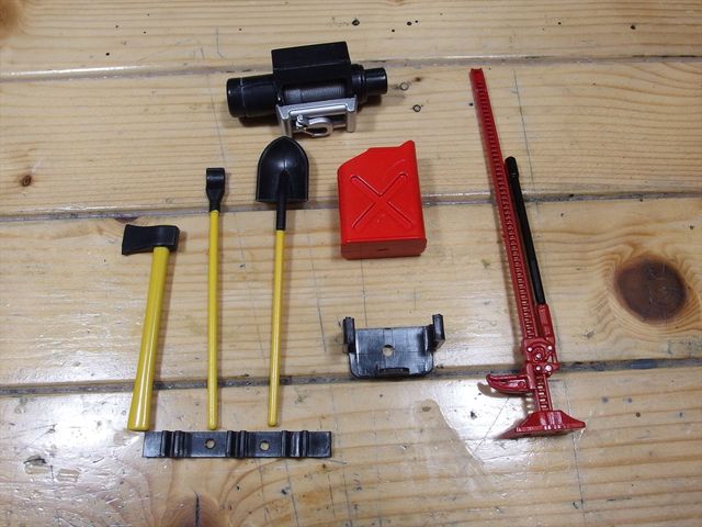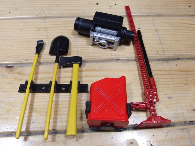 ジャッキ、ガソリンのジェリカン、ウィンチのダミー、後はスコップ等の工具