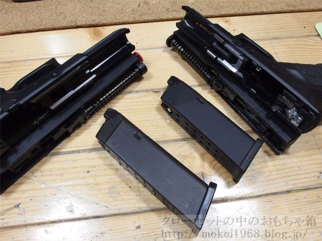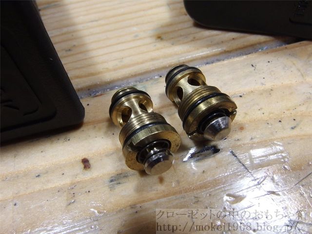 念のため、開放弁側を外して見ます、比較として右側がマルイ