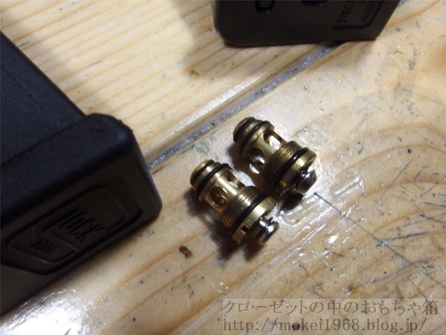 SAAのバルブは綺麗すぎます、グリスが無いですね ちょっとグリスをパッキンに付けてマガジン