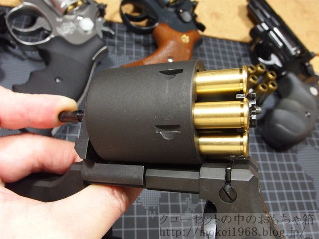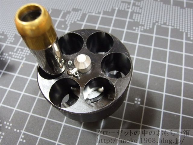 こういう感じに、で 発砲した後はカートリッジがシリンダーに残ります。