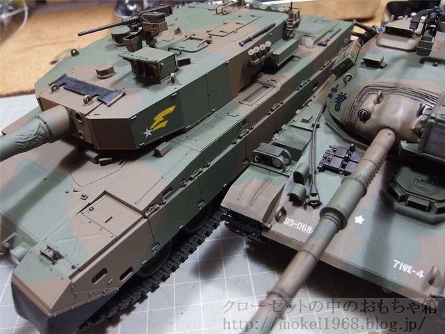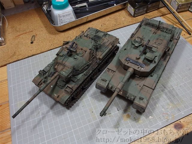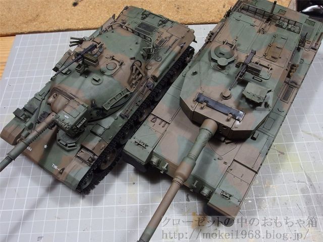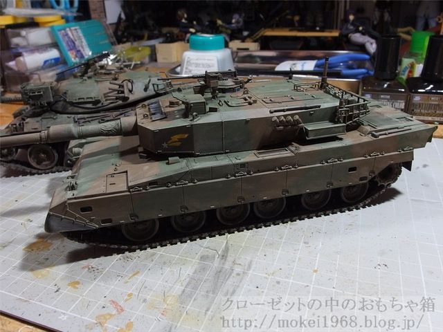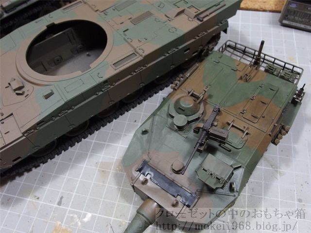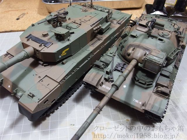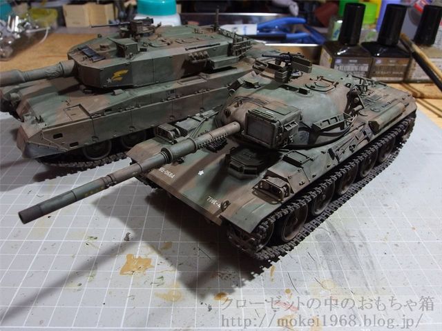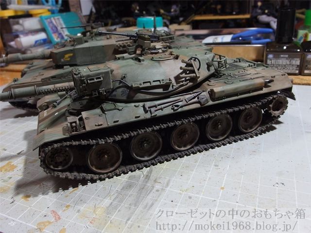 74式にとりあえず黒でスミ入れと雨だれみたいに