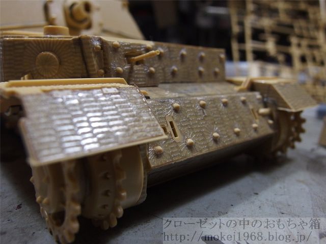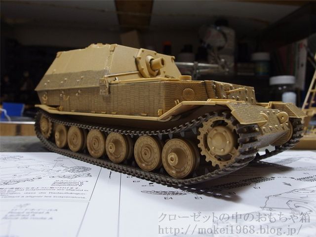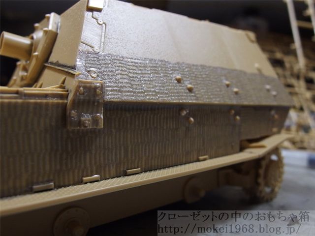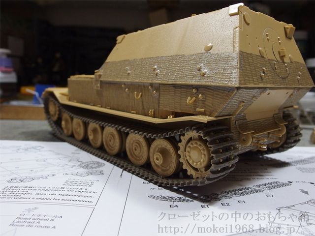 タミヤ 1/35 ドイツ軍 重駆逐戦車 エレファント ツィメリットコーティングシートを貼ります。