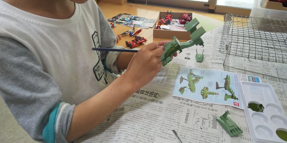 外出自粛の中、家に籠もれって話ですので、小2息子とプラモ作成を
