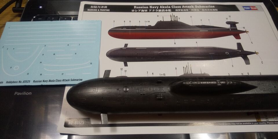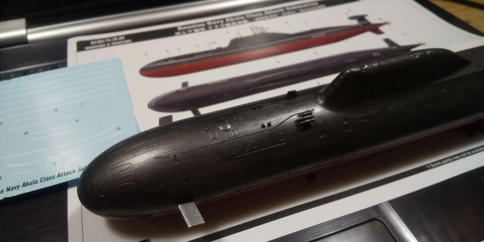 ホビーボス 1/350 ロシア海軍 アクラ級 デカール等を貼りました