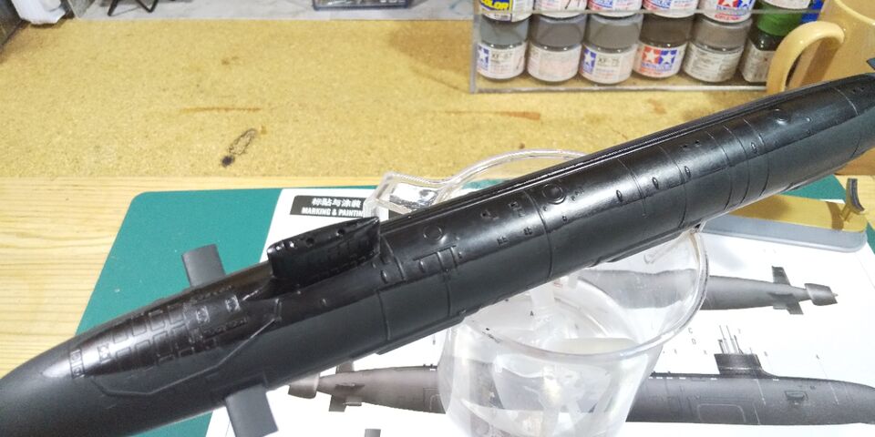 ブラックを塗りました。NATOブラックはマット系ですので、光沢色のブラックで差異を