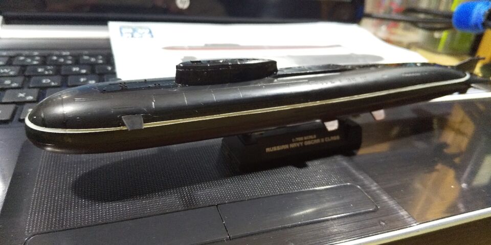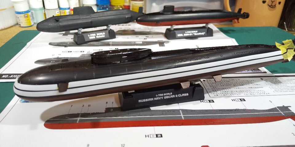 童友社 1/700 世界の潜水艦 ロシア海軍 オスカーⅡ級 塗装を続けます。