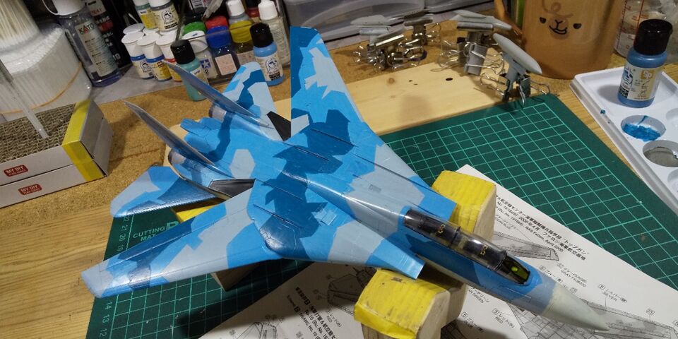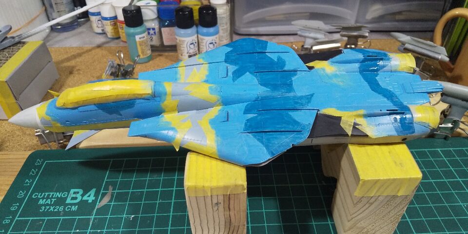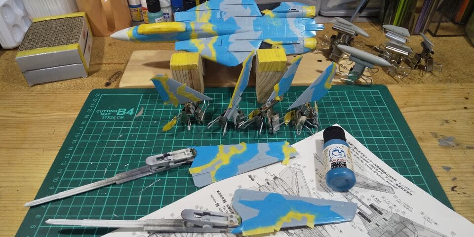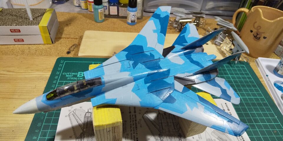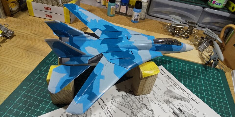 ファインモールド 1/72 F-14トムキャット トップガン 迷彩塗装を再開します。