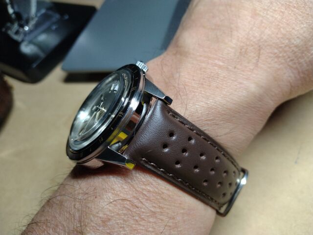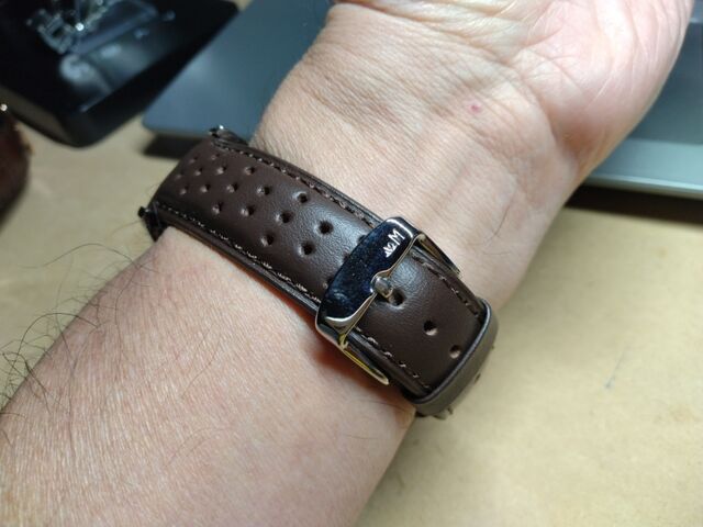 黒のバンドもいいんですけど、文字盤と雰囲気から見るとちょっとブラウン系もいいかなと