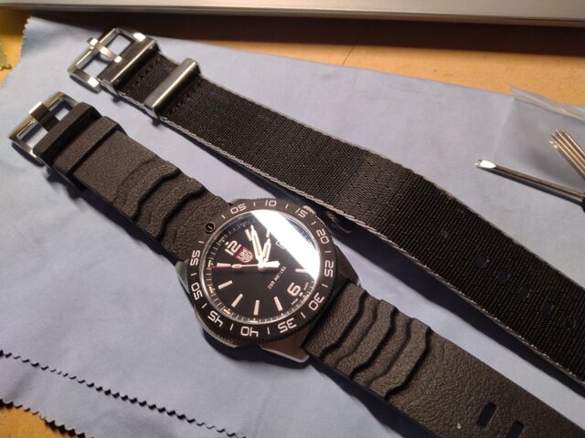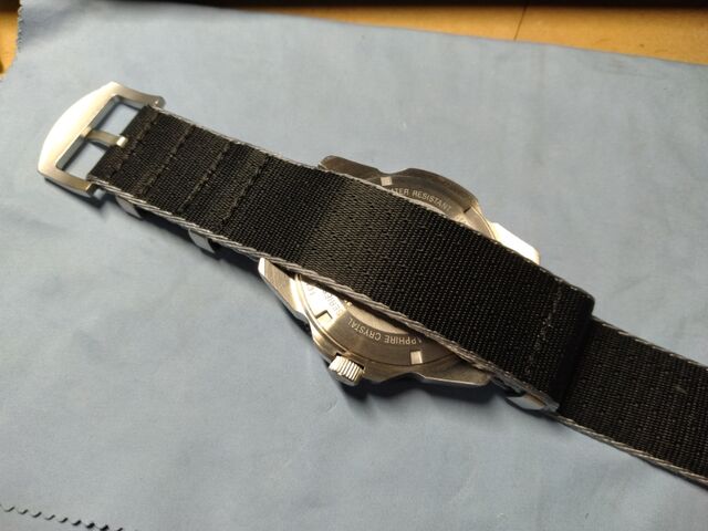 NATOベルトに交換します。純正ベルトはゴツすぎて・・・